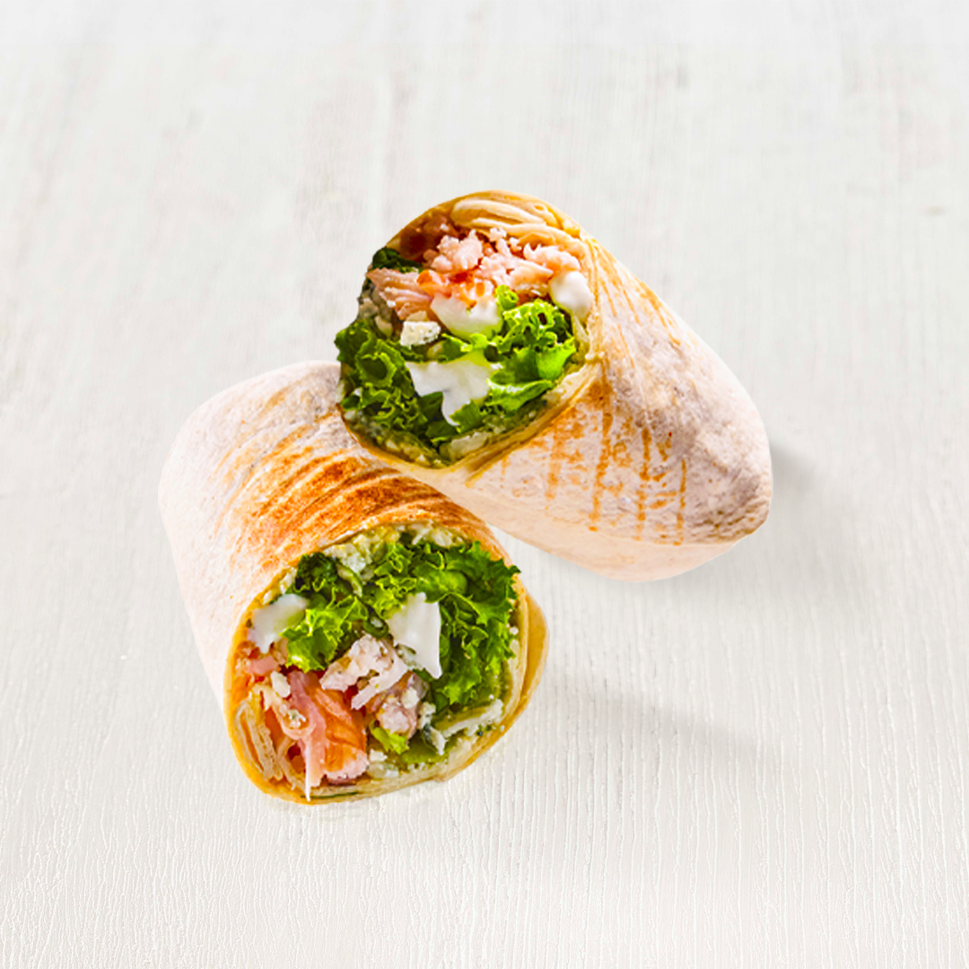 Složení: pšeničná tortilla, uzená kuřecí prsa, arašídová salsa, směs listových salátů, sýr s modrou plísní, mango-chilli zálivka